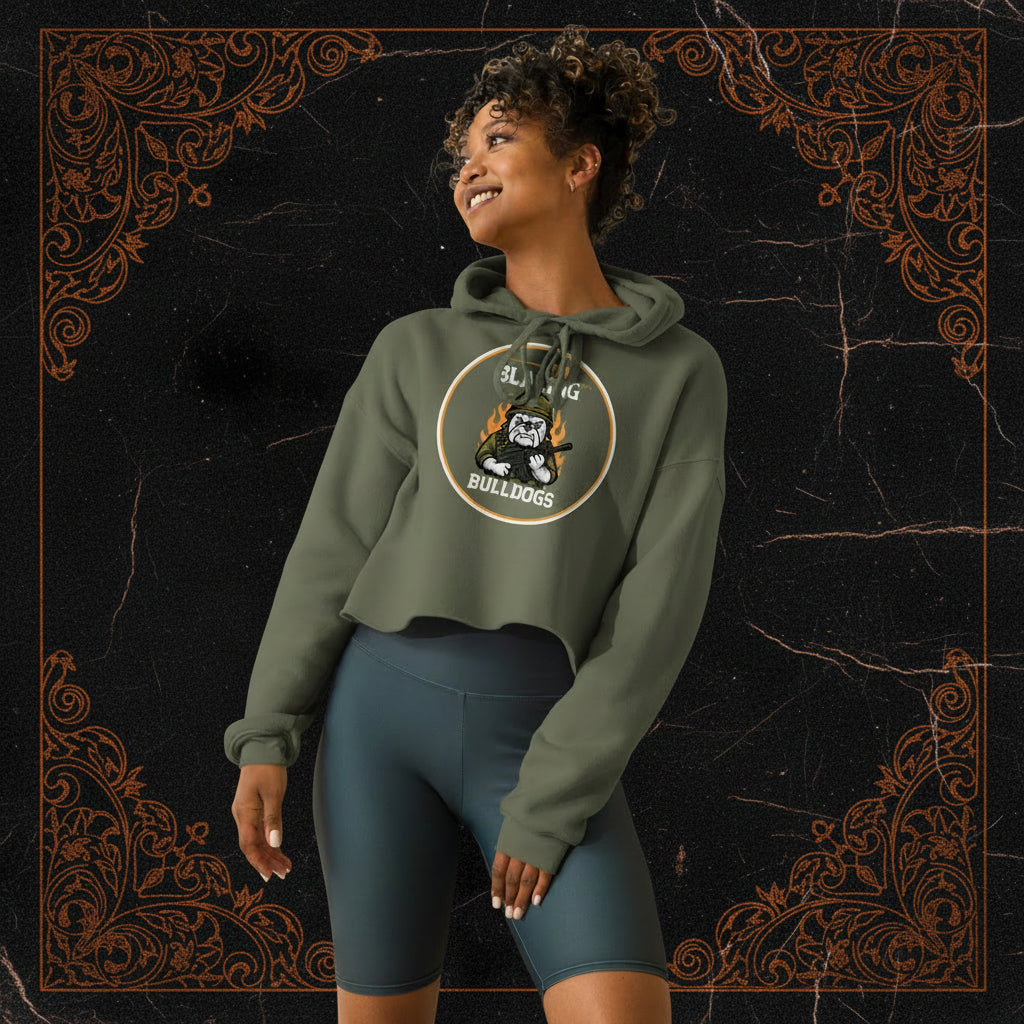 Ignite your style and let fashion take over your wardrobe with this great statement piece. The trendy raw hem and matching drawstrings means that this hoodie is bound to become a true favorite. This eye catching design captures the spirit of tenacity and adventure, perfect for those who love a mix of military-inspired edge and playful cartoon vibes. Whether you're hitting the gym, lounging at home or layering up for a casual outing, this cropped silhouette adds a trendy athletic touch to any outfit.
